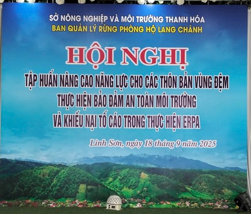 Ngày 18/9/2025 tại Trung tâm Hội nghị xã Linh Sơn, Ban quản lý rừng phòng hộ Lang Chánh đã tổ chức hội nghị Tập huấn với nội dung nâng cao năng lực cho các thôn bản vùng đệm thực hiện bảo đảm an toàn môi trường và khiếu nại, tố cáo trong thực hiện ERPA.
